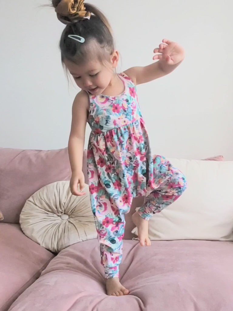Harem Romper Set - Royal Blue Floral Ruffle Waist